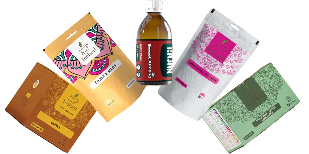 Teeheil offers products in individual teabags, pyramid bags, eco-friendly pouches, and glass bottles — depending on the product type.